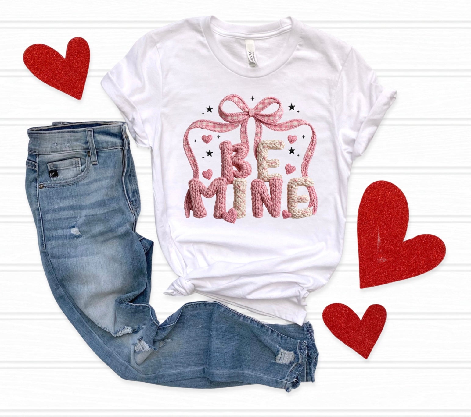 Valentine-inspired “Be Mine” graphic with bow & heart details